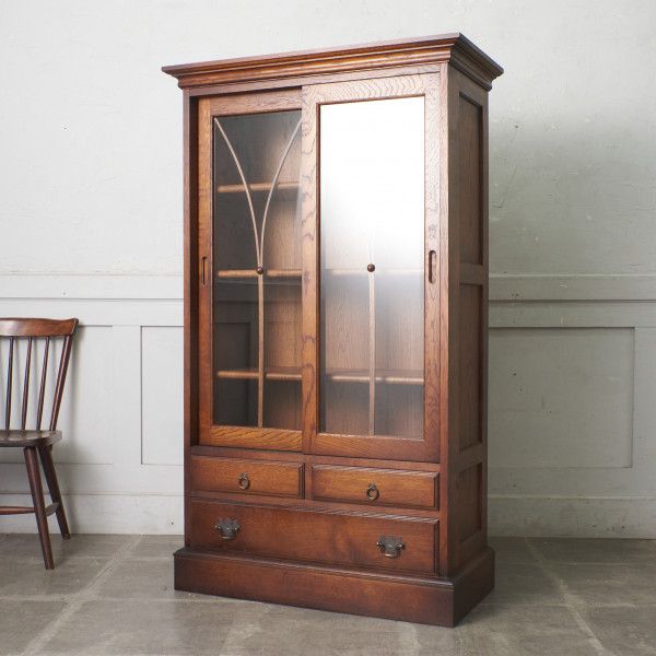 北海道の家具 旭川家具 天然木無垢材 本棚 扉付き ガラス扉 ブックシェルフ 飾り棚 コレクションケース 国産 日本製 収納 おしゃれ アンティーク調