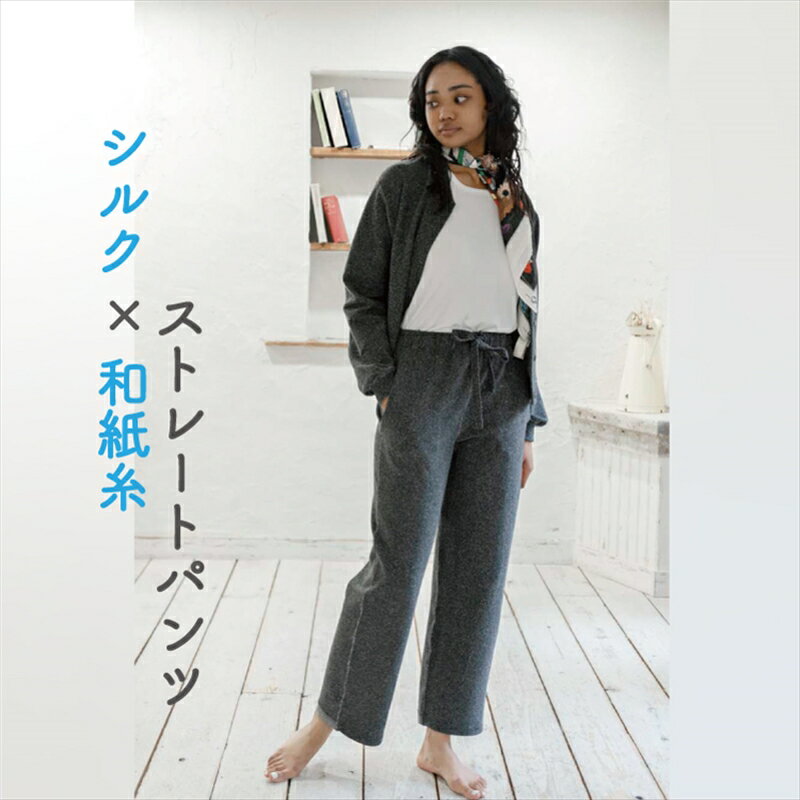 ふるさと納税 ストレートパンツ 黒ベースのMIXカラーネップ 信州ハンドクラフトフェスタ大賞受賞 シルク×和紙糸 長野県 佐久市