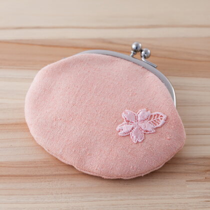 桜染ならではのやさしい色合いが特徴のがま口小銭入れ。