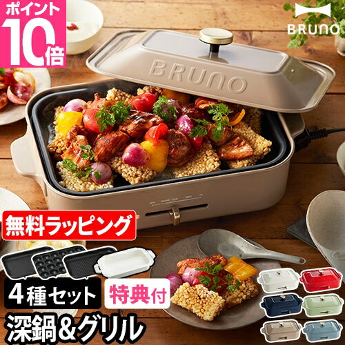 ホットプレート ブルーノ たこ焼き 鍋 電気 焼き肉 送料無料 特典付 ポイント10倍 BRUNO コンパクトホットプレート3種深鍋セット セラミック 琺瑯 電気プレート