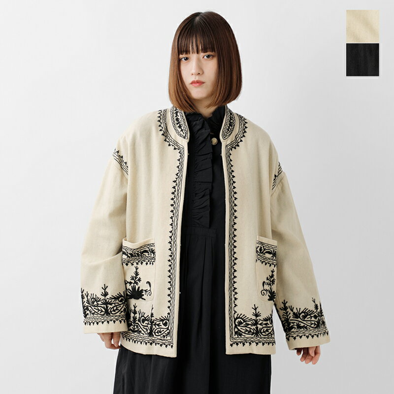 インド 伝統的 な 刺繍 アリエンブロイダリー が 目を惹く デザイン コーデ の 主役 になる ウール ジャケット ロングシーズン 活躍 する 厚み【送料無料】