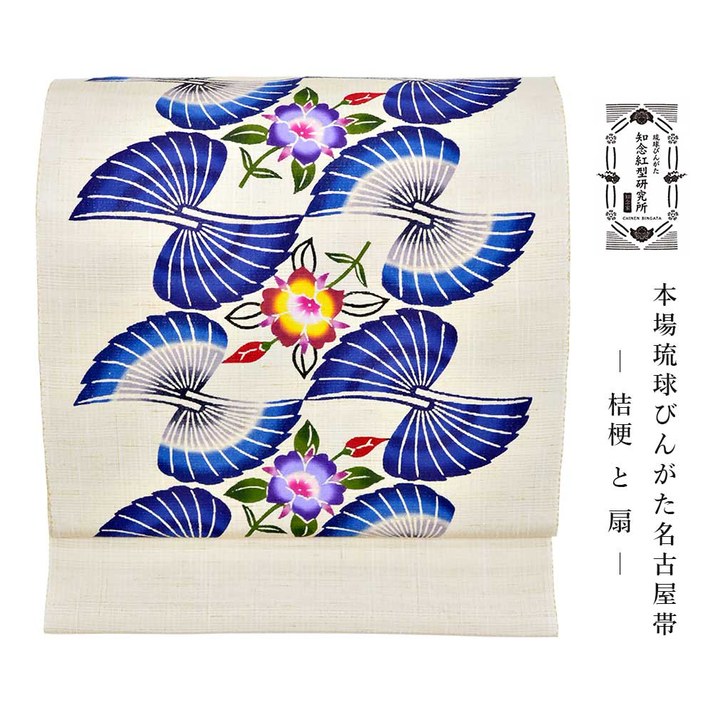 紅型三大宗家 知念家十代目知念冬馬さん作品 本場琉球びんがた名古屋帯 顔料を用いた鮮やかな色彩で図柄を表現 沖縄の伝統的手染物