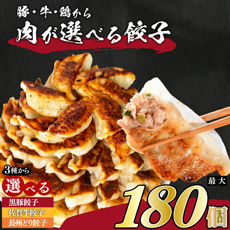 宮崎県・鹿児島県の南九州産黒豚のみを使用した黒豚餃子、佐賀牛のみを使用した贅沢な冷凍餃子、山口県産長州どりのみ使用した冷凍餃子を大容量の72~180個(6~15パック)お届けします!