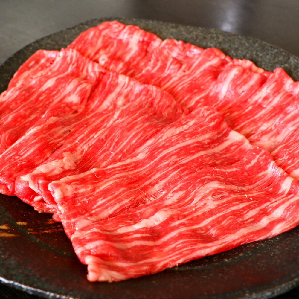 「くまもとあか牛」は、赤身の特徴的な味わい、ヘルシーさを兼ね備えています。贅沢にロース肉だけに限定して、すきやき用もしくは、焼肉用にスライスしています。