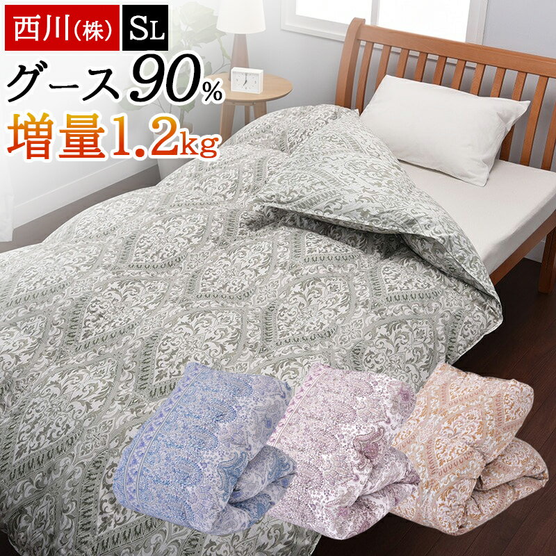 羽毛布団 シングル 西川 グース ダウン 90% グレーグースダウン あったか 増量 1.2kg 日本製 ユニステークキルト 圧縮梱包 暖かい KA02005004