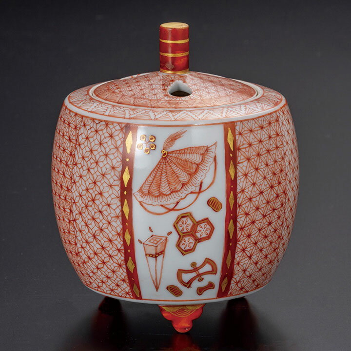 九谷焼 3.5号香炉 赤絵宝尽くし文/福島礼子<香炉 ...
