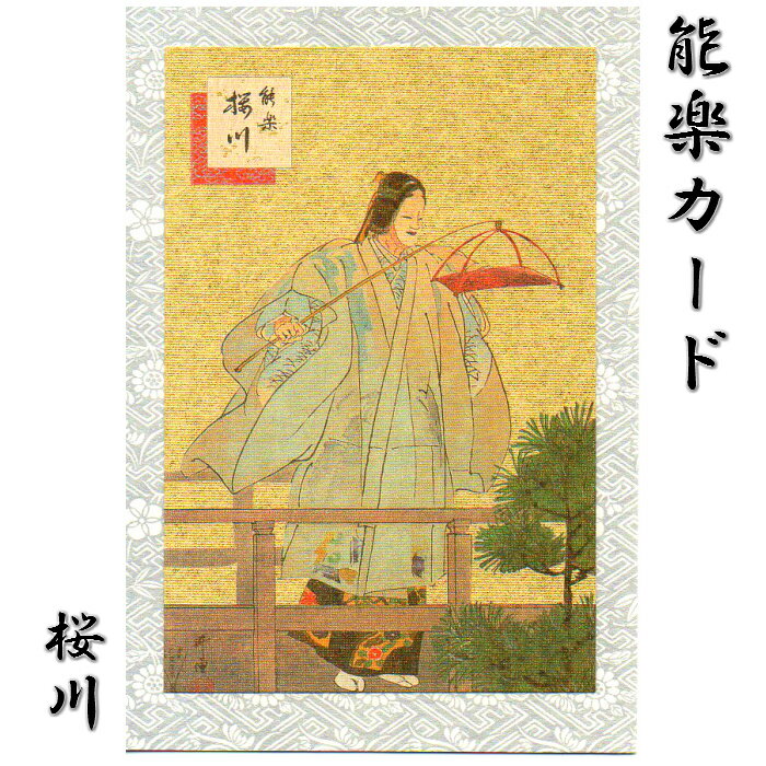 グリーティングカード 和風 能 能楽 クリスマスカード 海外向け【メール便 対応可】定形郵便サイズ 桜川(さくらがわ)イラスト 和紙 中紙・白地封筒入り メッセージカード 福井朝日堂 京都